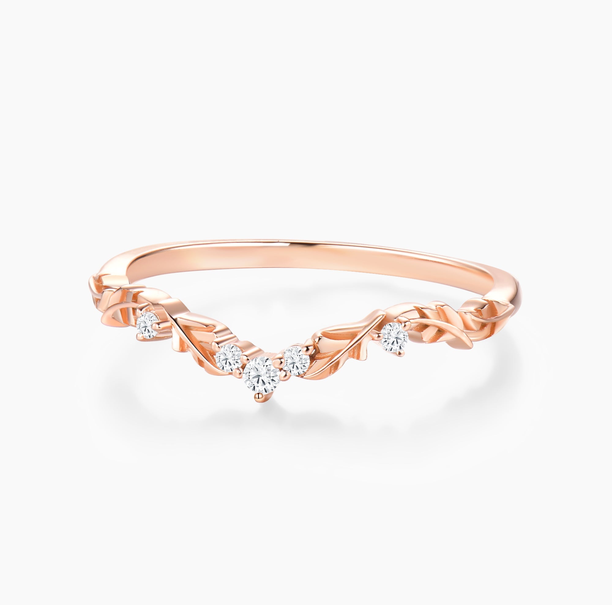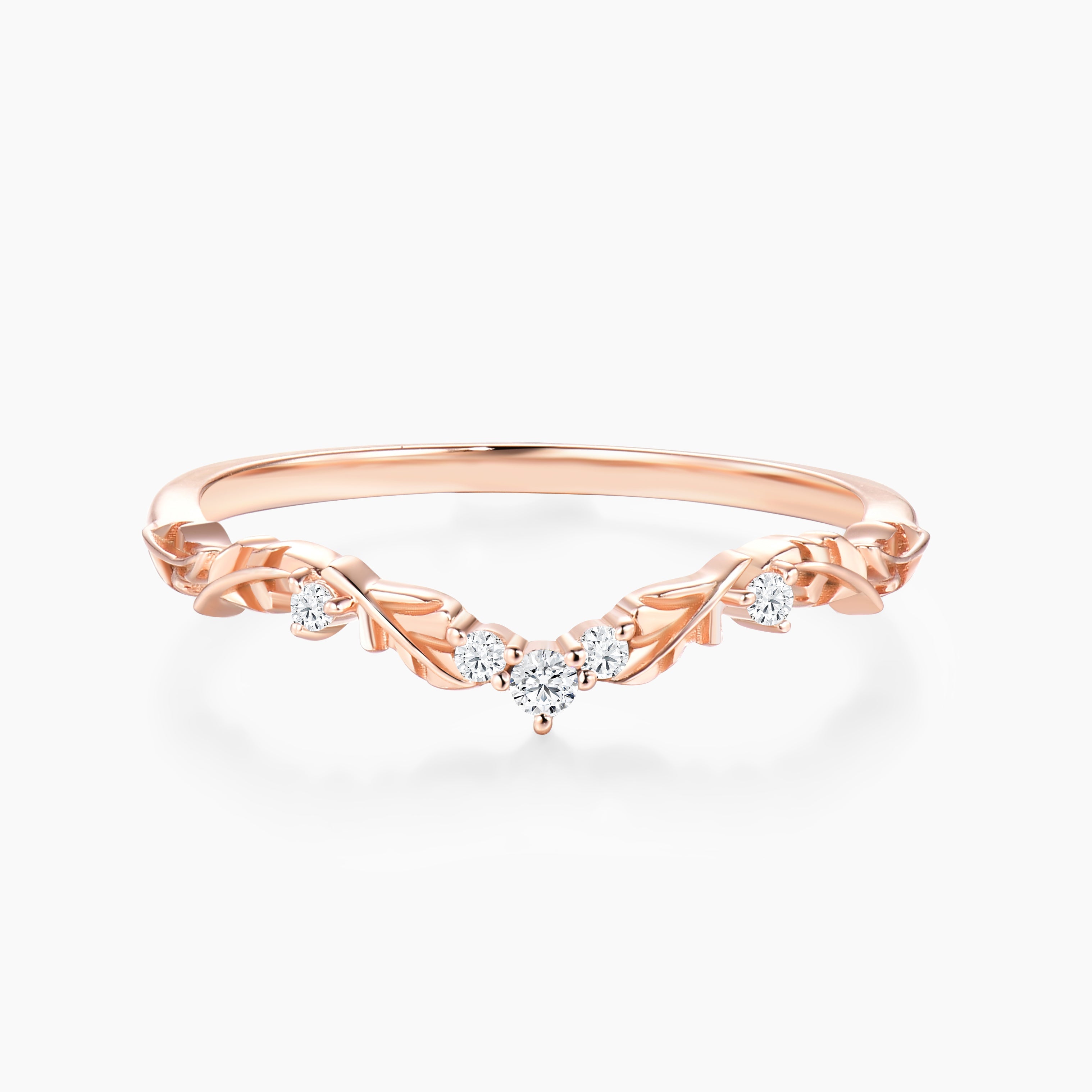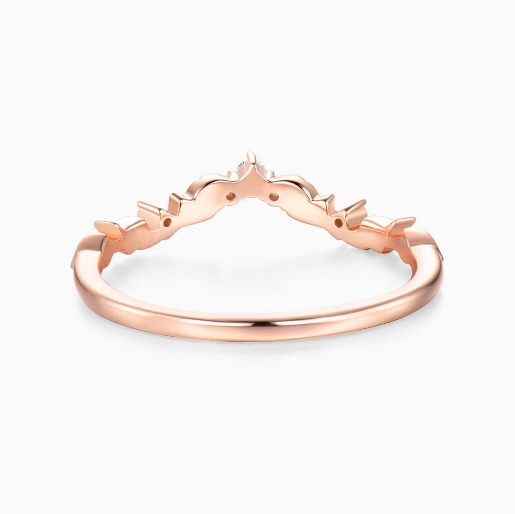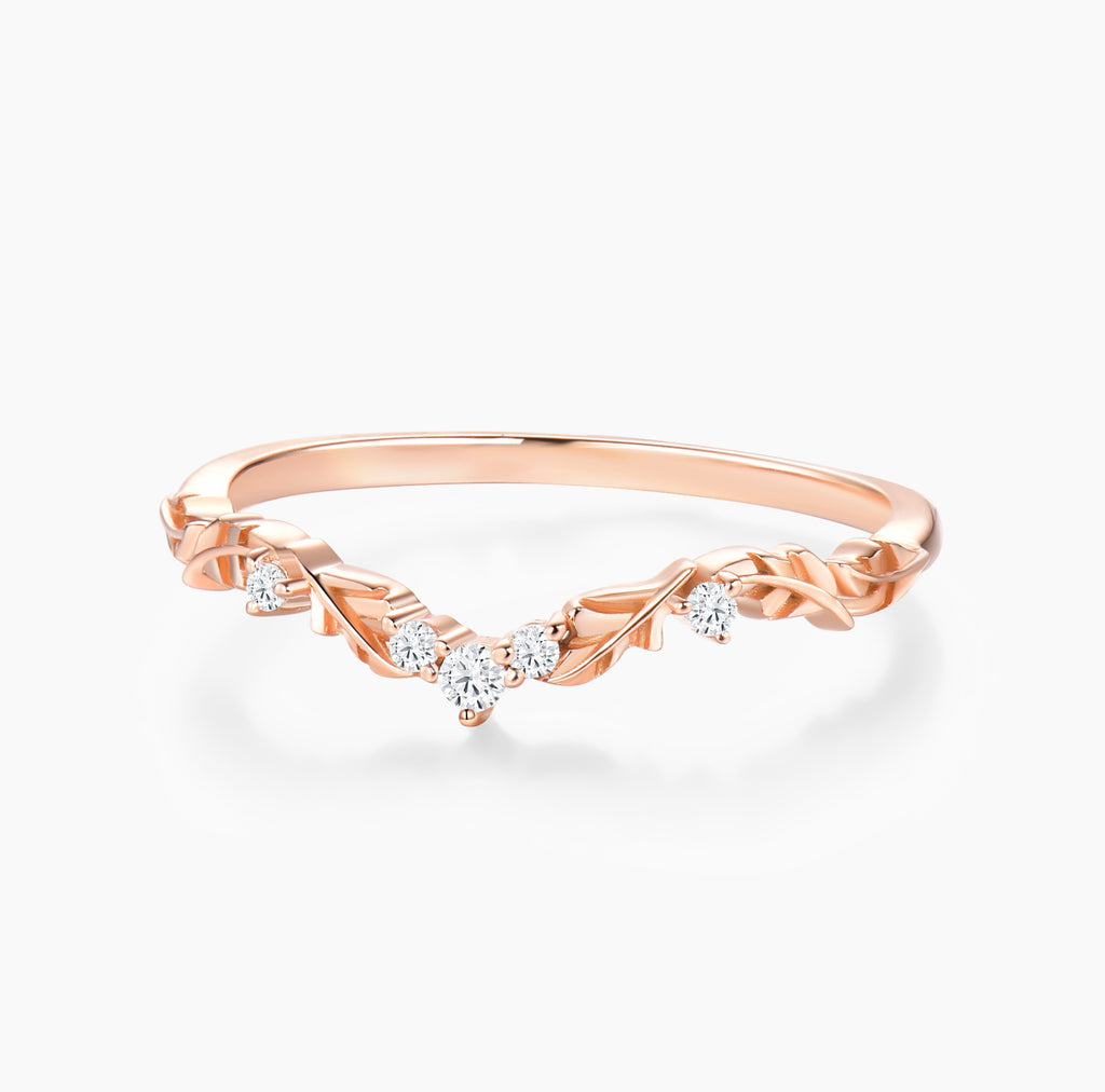 Gemnity Natural Diamond Leafy Style Curved Wedding Band Art Deco Olive Branch Style Chevron Matching Band Woman